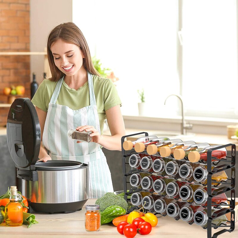 COMPLETE KIT – This spice rack kit comes with 24 jars with a 4-ounce capacity each(1.7 x 1.7 x 4.1 inch), 80 spice labels, a white chalk marker and 1 silicone funnels. This functional seasoning rack can be a great gift for friends.