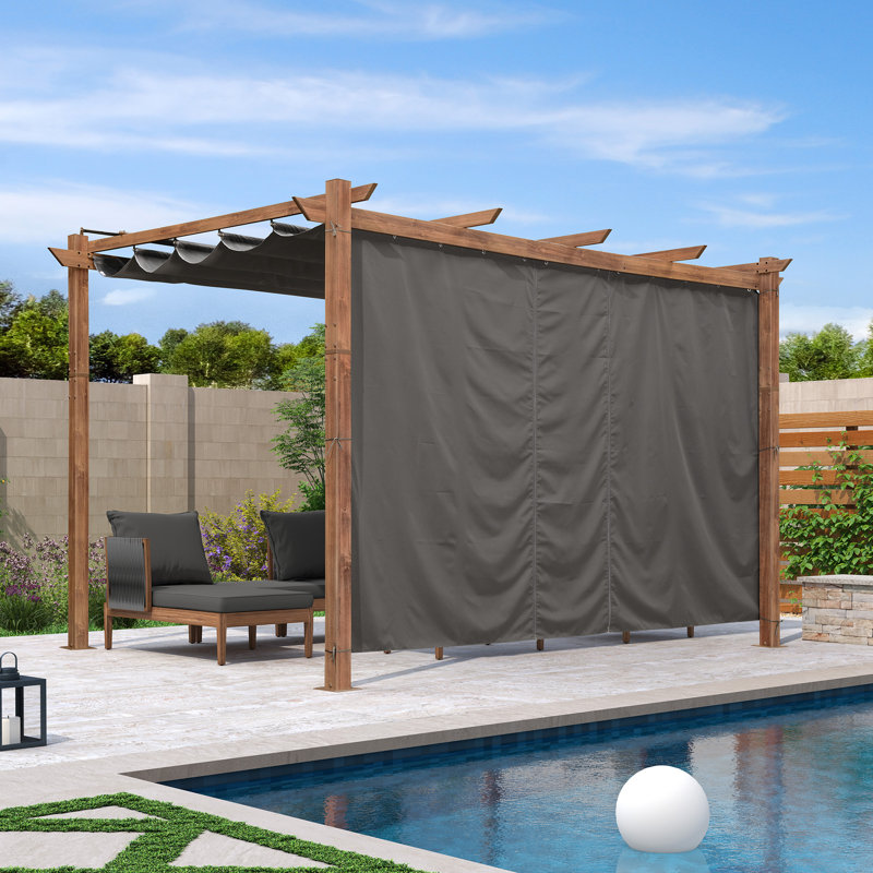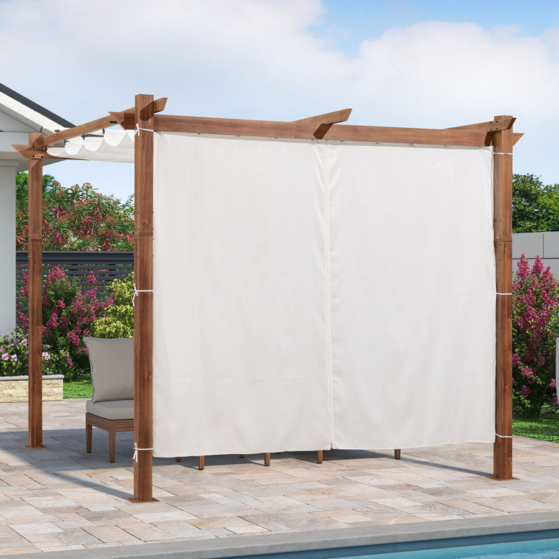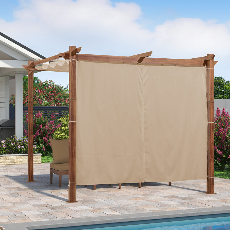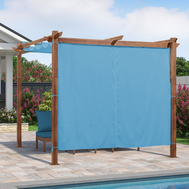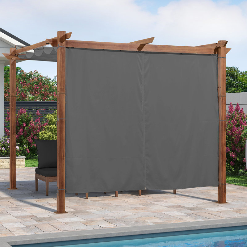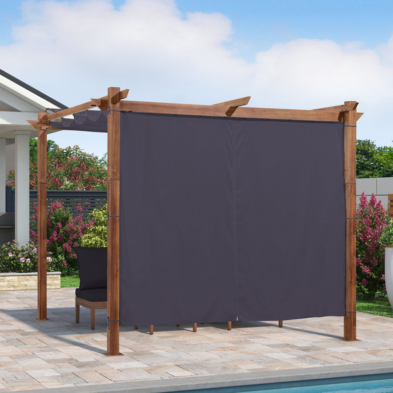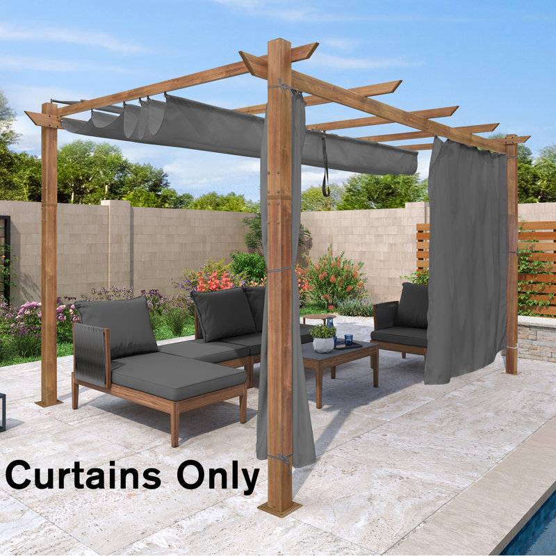 Dimensions: Curtains only and frames not included. Equip with 2 panels and 1 curtain rod. The rod is 98 in. Curtains fit perfectly for purple leaf 10′ Pergola.