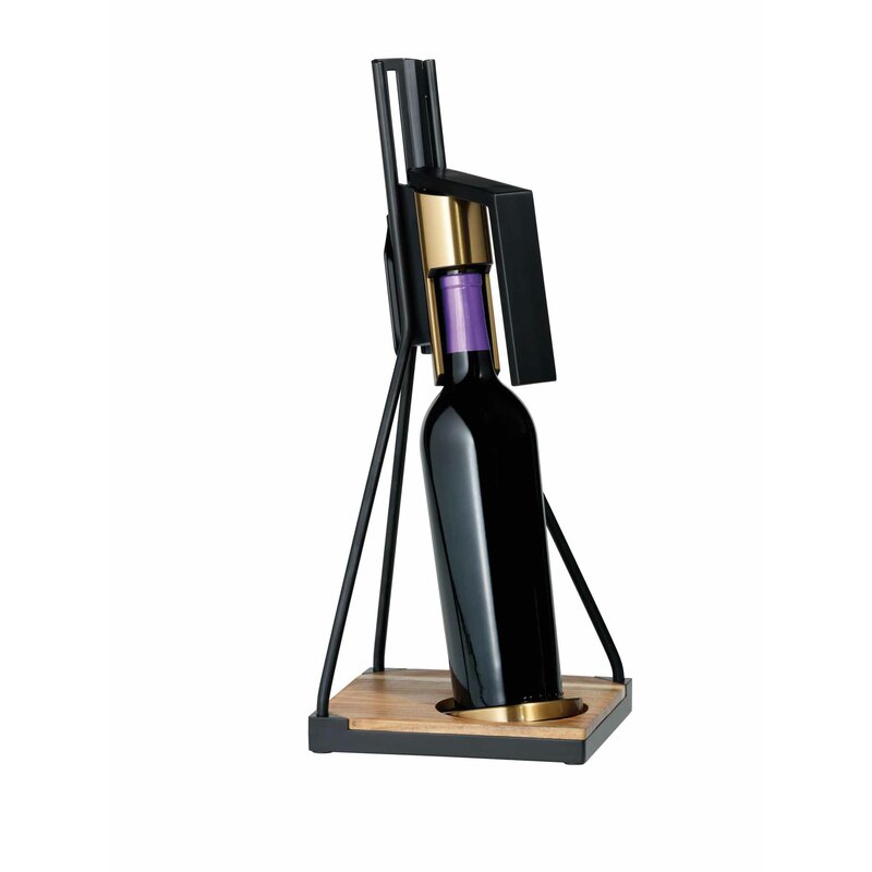 The unique bottle platform tilts to stabilize the bottle and make opening easy
