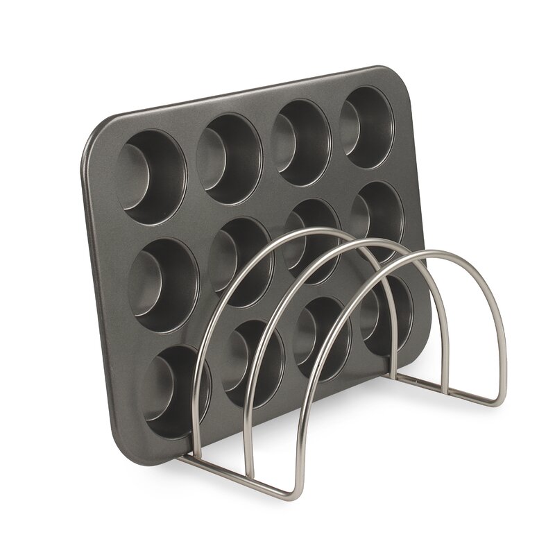 3 Dividers neatly store plastic storage lids, cutting boards, and thinner bakeware