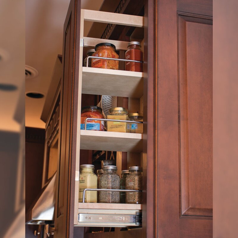 Rebrilliant’s founding in 1923 and Rebrilliant America Co.’s beginnings in 1973, we have drawn upon the collective experience of our people to bring you the finest products and our unparalleled expertise in the industries we serve. Use this Wall Pull-Out by Rebrilliant as a pull-out in framed cabinets. With adjustable shelving and an open-top shelf, this pull-out is great for extra storage space in your kitchen. Able to hold up to 100 lbs., this pull-out has full extension Accuride ball bearing slides and is available in multiple widths.