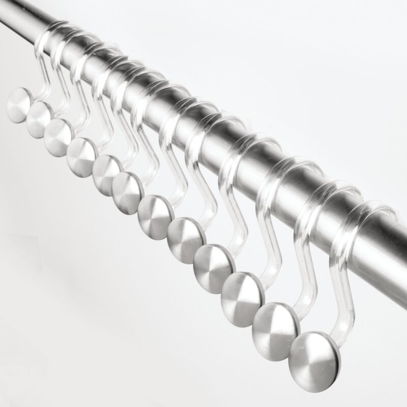 This set of 12 is made of durable plastic and stainless steel. Glides smoothly over curtain rods.