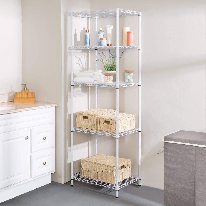 From the pantry to the bathroom, organizers like this one are a versatile way to add a little storage space when you have the square footage to spare. This Elianore 72″ H Shelving Unit is crafted from a combination of wire and steel and delivers a streamlined, minimalist look perfect for almost any space. And since the five shelves feature adjustable heights and can even be removed, you can easily tailor this piece to suit your storage needs.