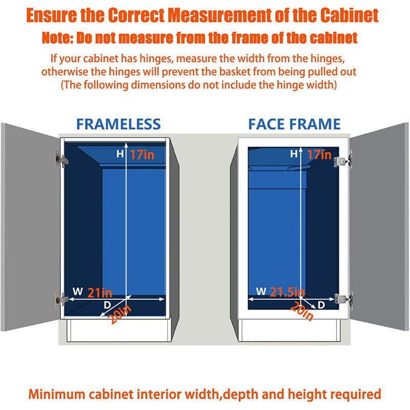 Store cabinet essentials within easy reach with a metal pullout basket and maximize your cabinet space. No more back-breaking bending over and shifting items around to get to what you want, perfect for storing food containers, cans, cutting boards, pots and pans, spices and etc. This cabinet organizer is perfect for installation inside base cabinets, make sure you measure your cabinets correctly before purchasing. You just need simply to mark the location of the holes and drill the pilot holes and then align the organizer with the holes and secure it with the included screws, which can be installed within 15 minutes. The new version updates the slide and mounting method to ensure more value, It Slides smoothly on a full-extension ball-bearing system with 100 lbs load capacity.