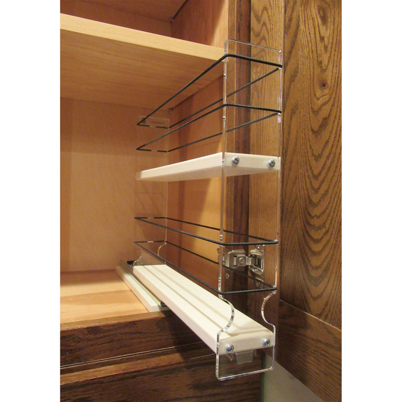 Declutter your kitchen cabinets and experience expert convenience with the 2-tier sliding spice rack organizer from Rebrilliant. This sturdy and quality-made spice rack organizes up to 10 standard-size spice jars or 20 half-size jars on a sliding track that brings the back row easily to the front for you. This unique spice rack organizer features a 2-tiered drawer that measures 2.1 inches wide by 10.05 inches long and glides on a chrome steel ball-bearing slide for a smooth full extension. Constructed from durable clear acrylic and HDPE plastic, this rack allows you to pick out your intended space without the hassle of rummaging through countless containers. The base of the rack is finished in a cream color that is the perfect neutral to blend into your kitchen decor. The organizer’s flex-sides are made of woven polyester over an elastic core that allows the easy off and on of spice jars and can expand to conform to the occasional oversized container. This spice rack comes fully assembled and easy to install with the included self-tapping screws. Find a unique solution to your organizing needs with the 2-tier sliding spice rack organizer from Rebrilliant.