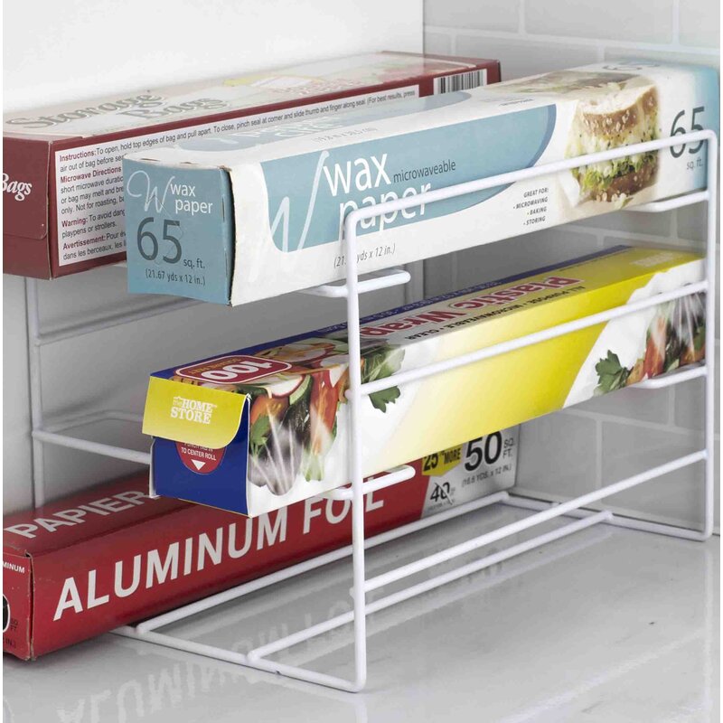 Store and organize all of your foil and plastic wraps in this wrap organizer. Made from heavy-duty vinyl-coated steel. Rust-resistant finish. Increase your cabinet space with the compact, vertical construction. Looks great in any kitchen setting.