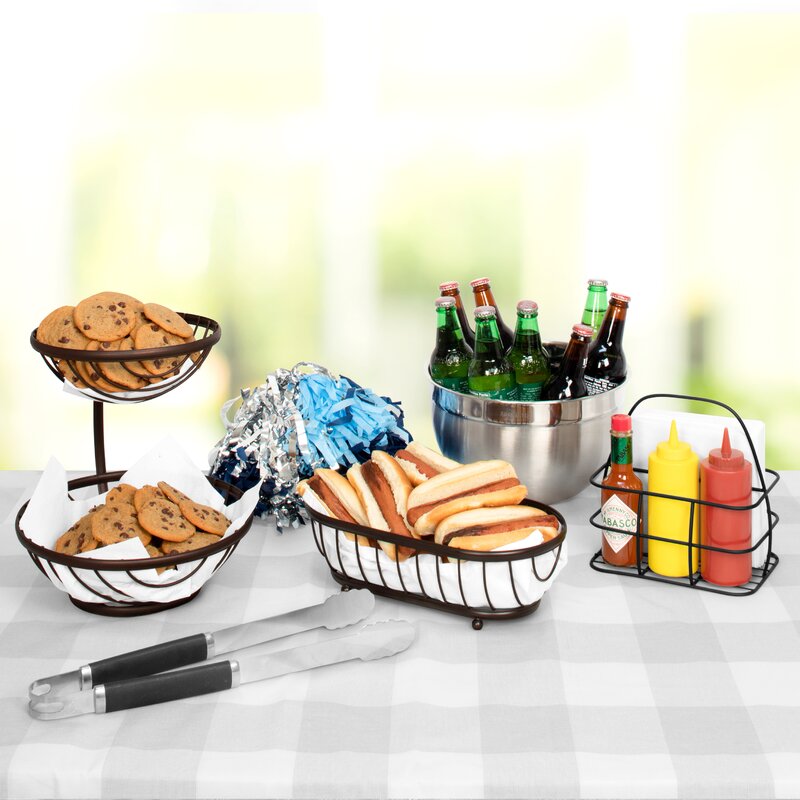 Keep an assortment of your favorite fruits and vegetables in one convenient place with Rebrilliant’s fruit bowl. Two open bowls allow fruits and vegetables to evenly ripen while offering quick and easy access to stored items. Designed to coordinate with any décor. Made of sturdy steel.