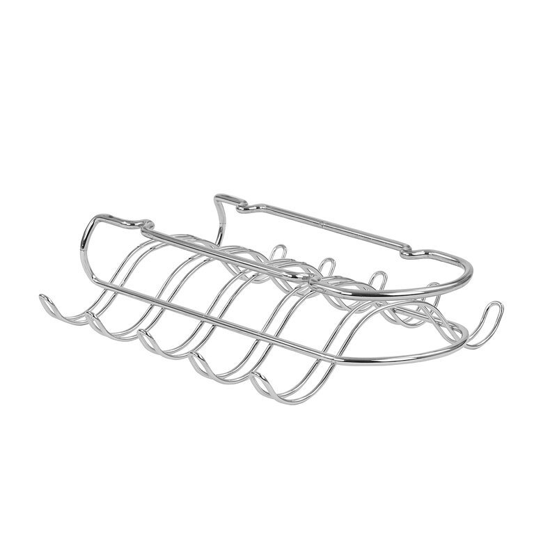 Easy Install: To install on cabinet shelves, simply slide the upper arm over the intended shelf. To mount under a cabinet, position the rack in the preferred mounting area. Tighten the screws in the looped grooves of the top arm of the rack. Mounting hardware included.