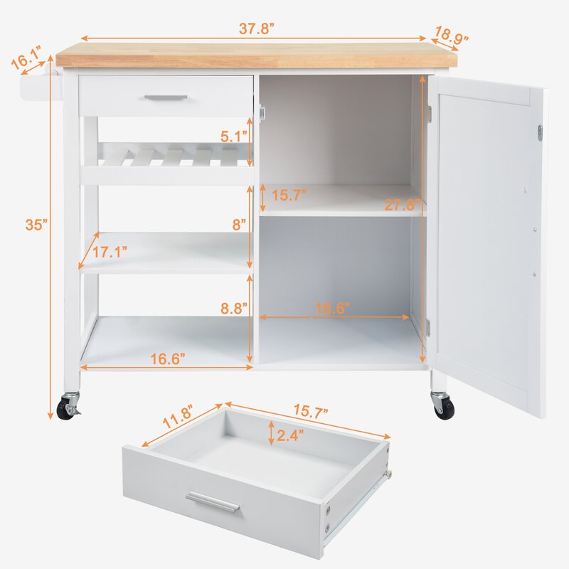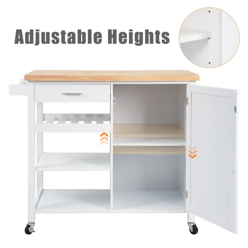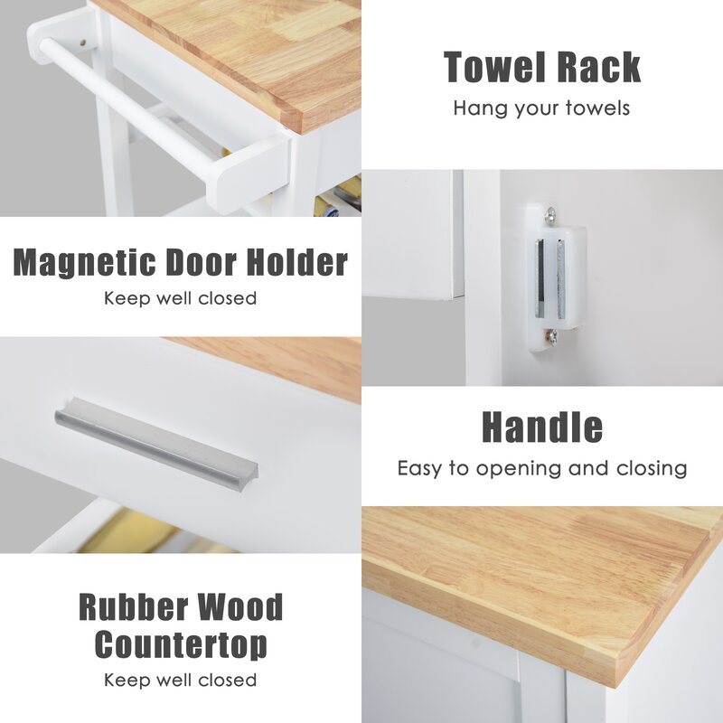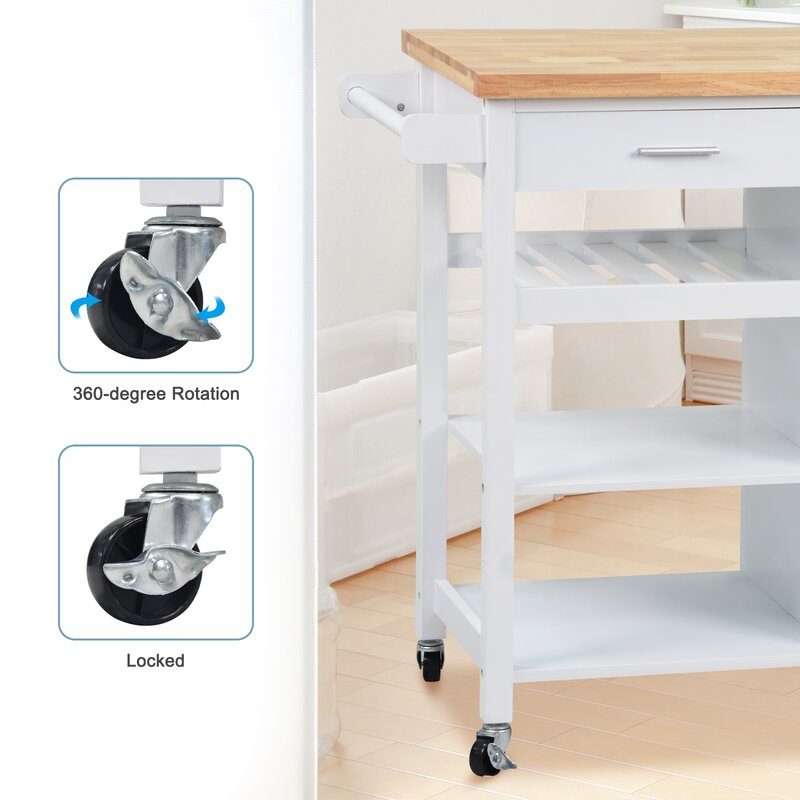 Portable design: the white kitchen island is equipped with 4 strong universal wheels (2 with brakes), and you can move it easily anywhere you want.