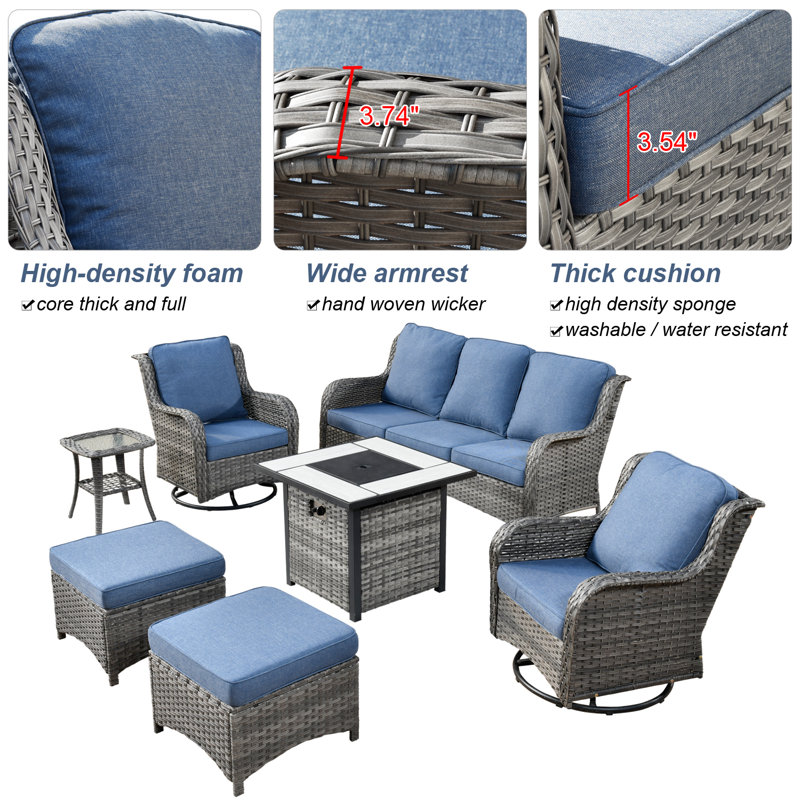 The furniture set comes in five attractive cushion colors, including denim blue, gray, orange-red, beige, and navy blue, giving you the flexibility to choose colors according to your home decor style.