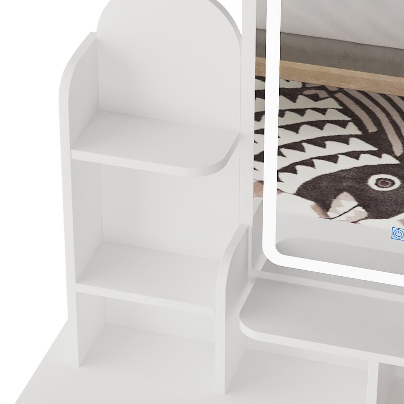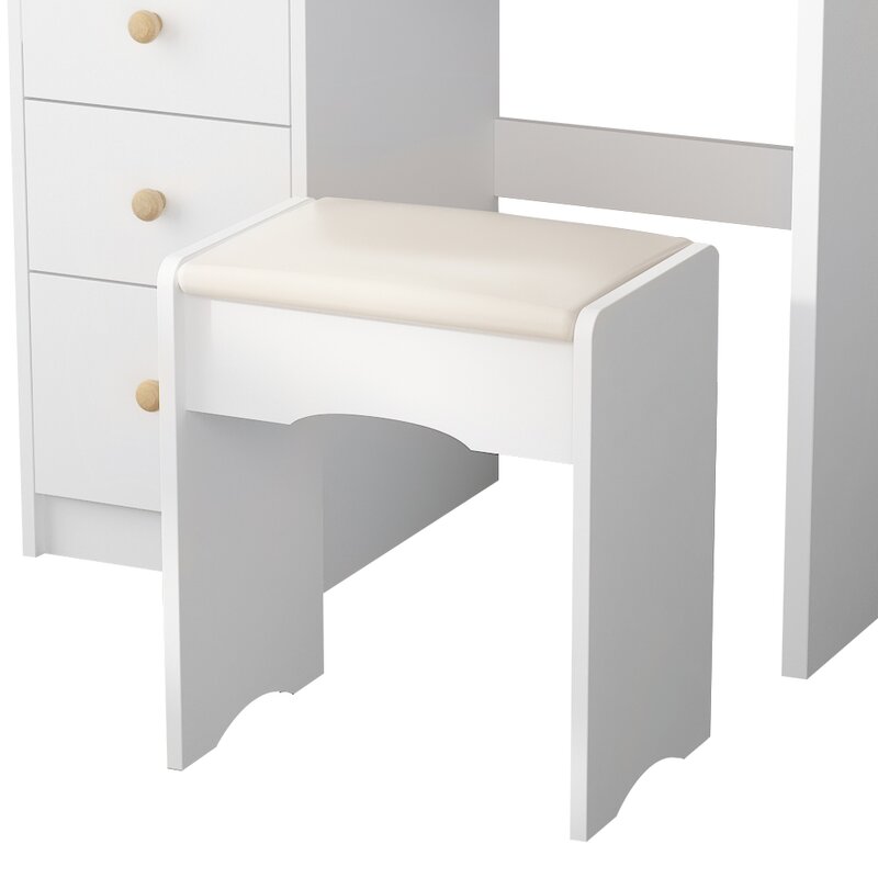 Cushioned chair – this padded stool is made of premium flame-retardant sponge and fabric. Proper height and a soft cushioned seat will ease your fatigue and give you a more comfortable makeup experience. This stool can be placed completely under the table without taking up extra space