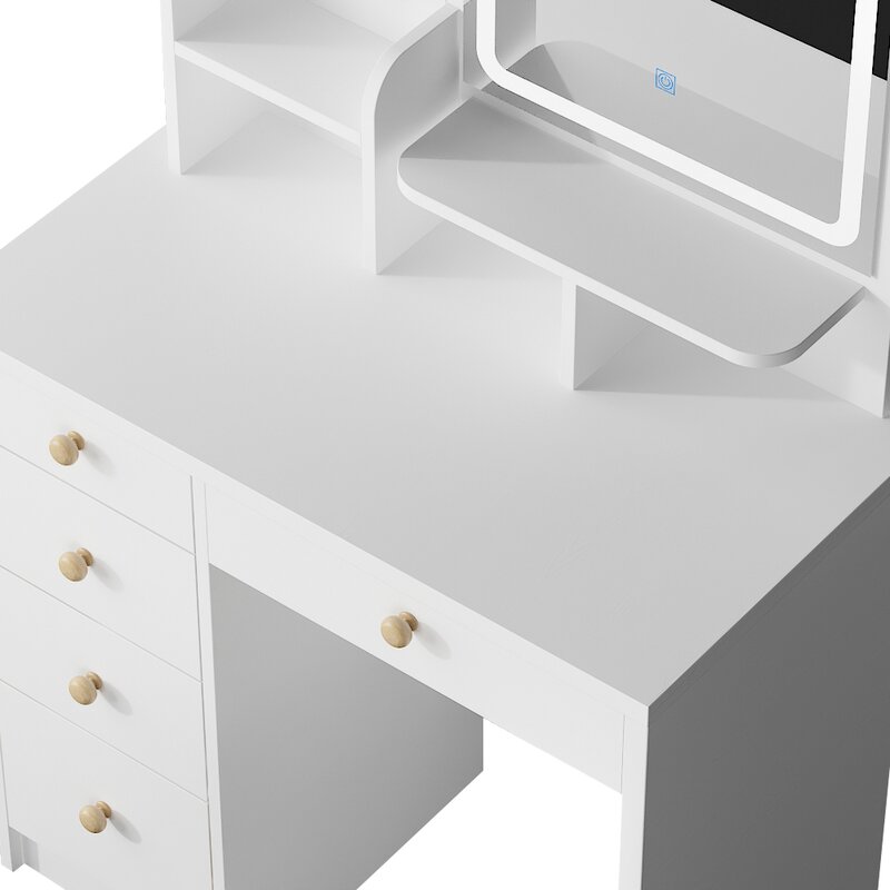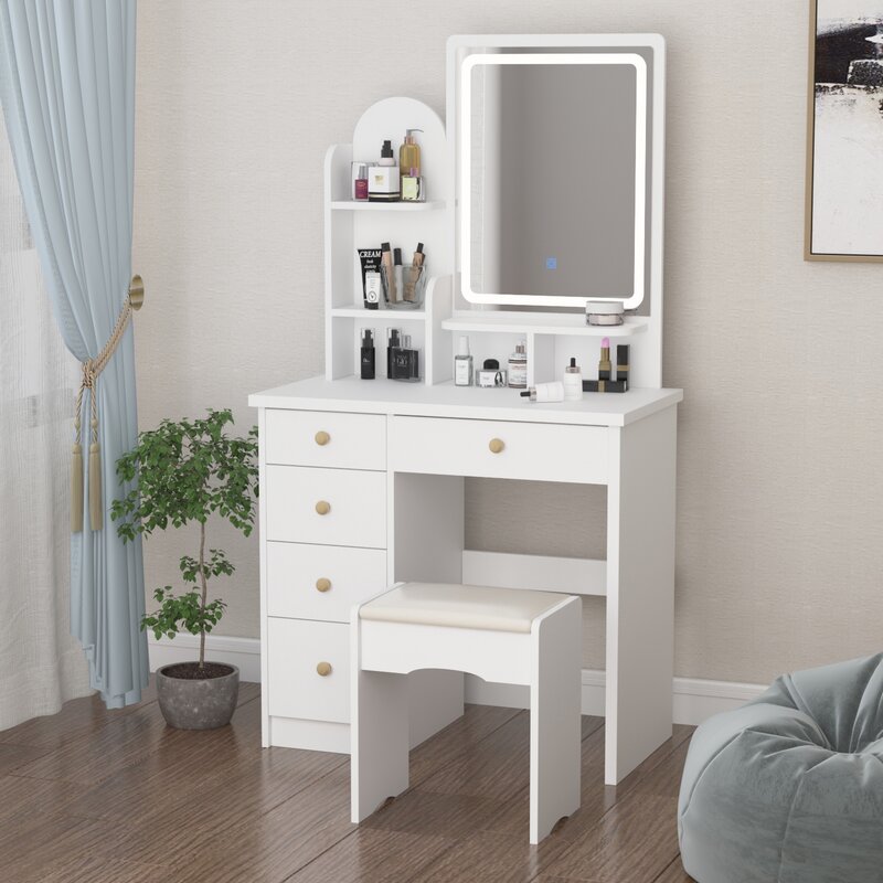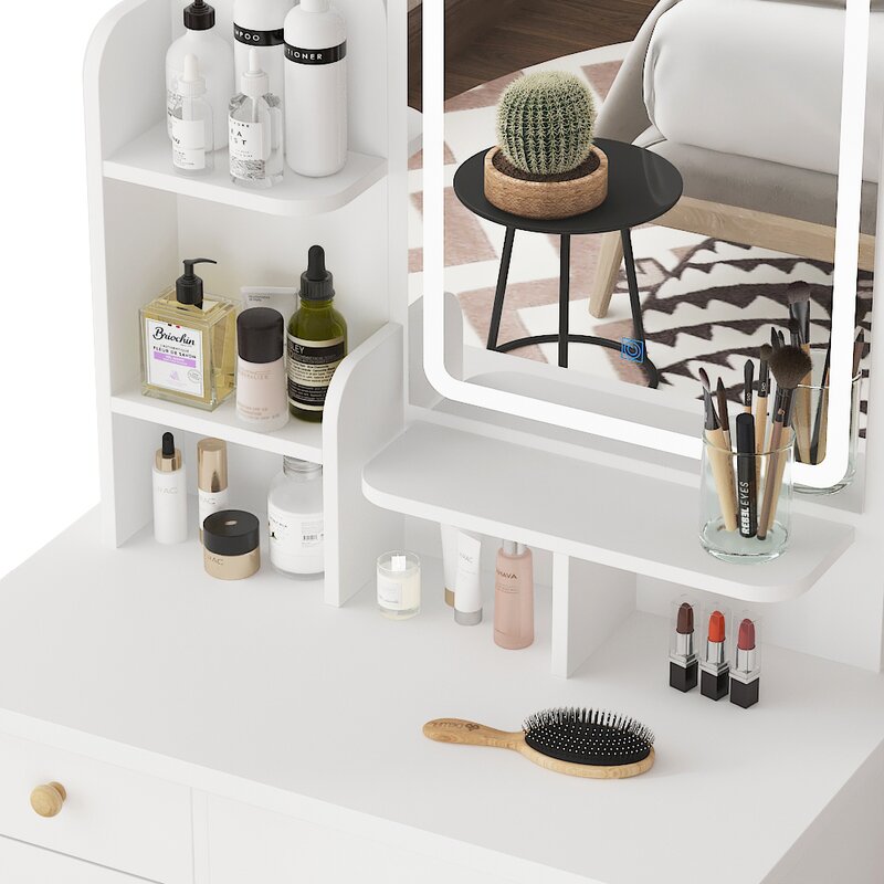 Adequate storage capacity – 5 drawers and 3 shelves on the desktop provide you with plenty of storage space. The large storage space allows you to put all your skincare products, cosmetics, jewelry, and other beauty supplies