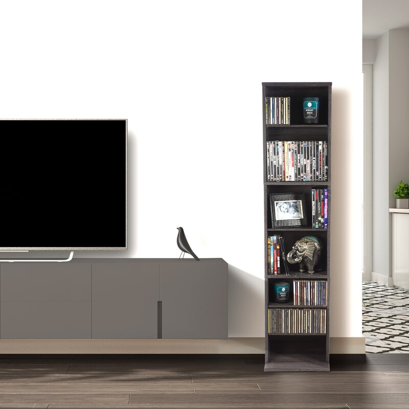 There’s no one better to decide the arrangement of your shelves than—yourself. 6 of the Red Barrel Studio’s 9 are height-adjustable, meaning your media display and storage is customizable to your needs. You can stow hundreds of CDs, DVDs, Blu-rays, and games, in addition to any other cherished items you want to display. A sleek finish and slender profile are the icings on the cake.