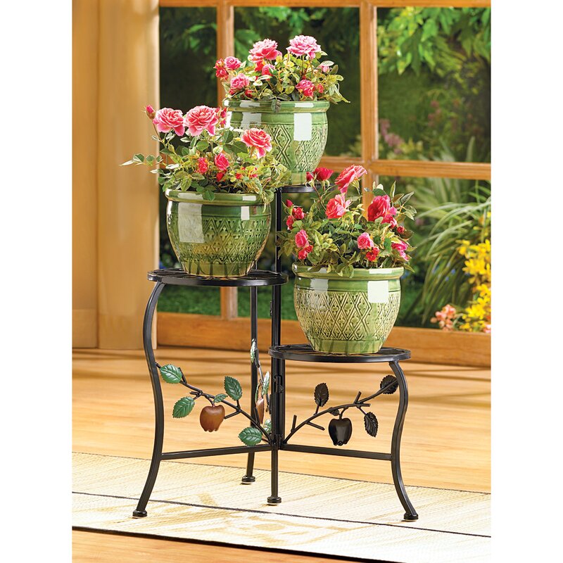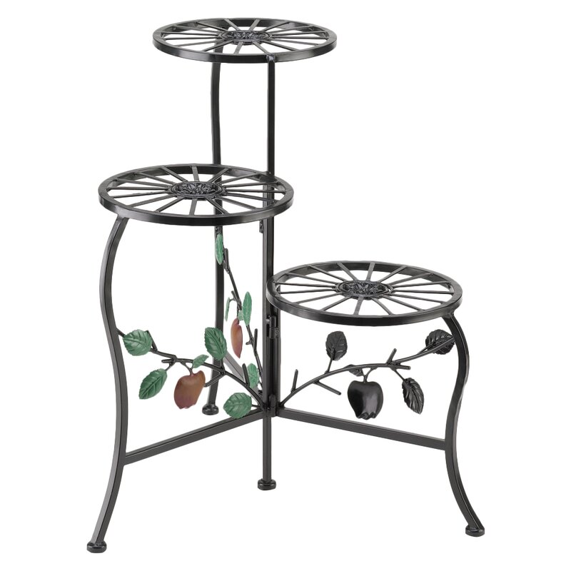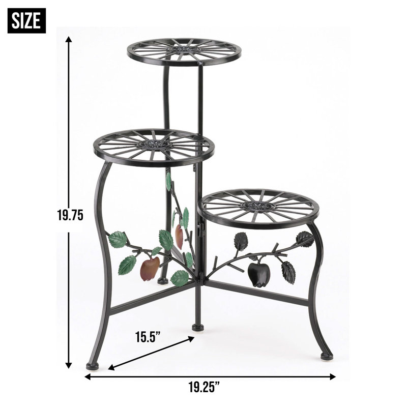 Aesthetically appealing and refined, the Red Barrel Studio® apple cart tri-level plant Stand is the perfect companion for the pots in your home. Intricate detailing, ornately crafted country-style apples and a stunning tri-level design enhance its beauty. It is constructed using wrought iron that ensures years of utility and durability. Enameled with a lustrous brown finish, the planter is perfect for country and cottage interiors. It features an alluring three-tiered design that offers ample space to display your potted plants. The apple cart tri-level plant stand by Red Barrel Studio® is perfect for decorating the room corners or patios