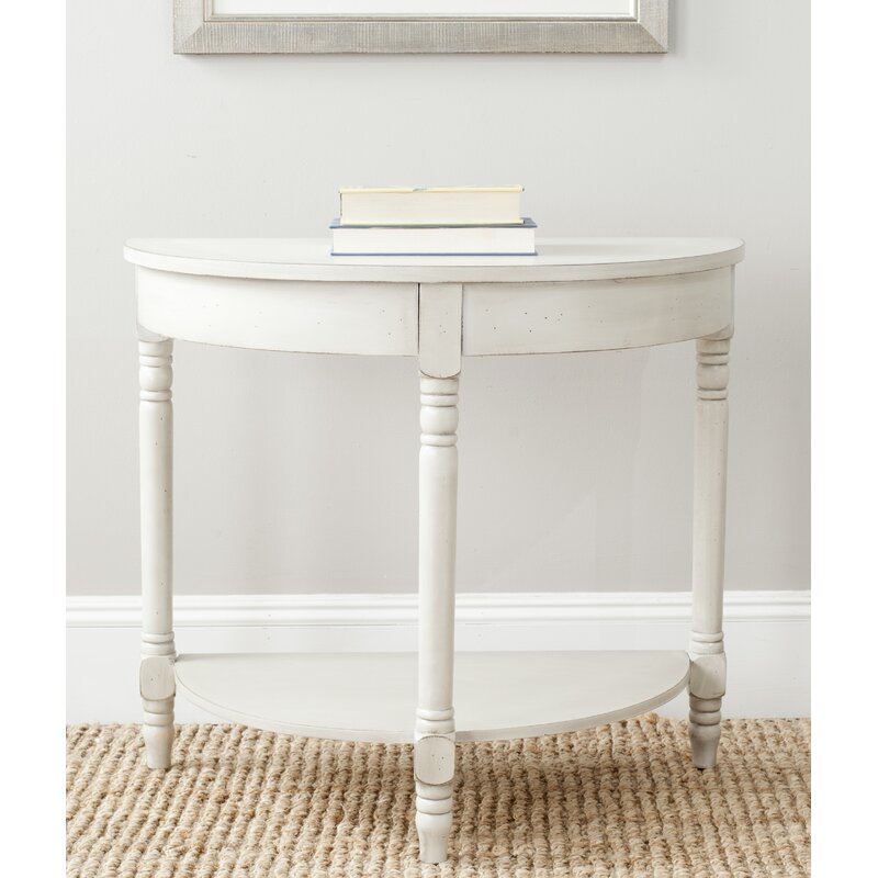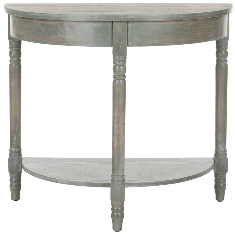 Inspired by elegant Georgian architecture, this Graer console is a stately addition to the hall or entry. Graer embraces its regal roots with a demilune silhouette and timeless turned legs, while an off-finish makes it perfect for any classic contemporary decor.
