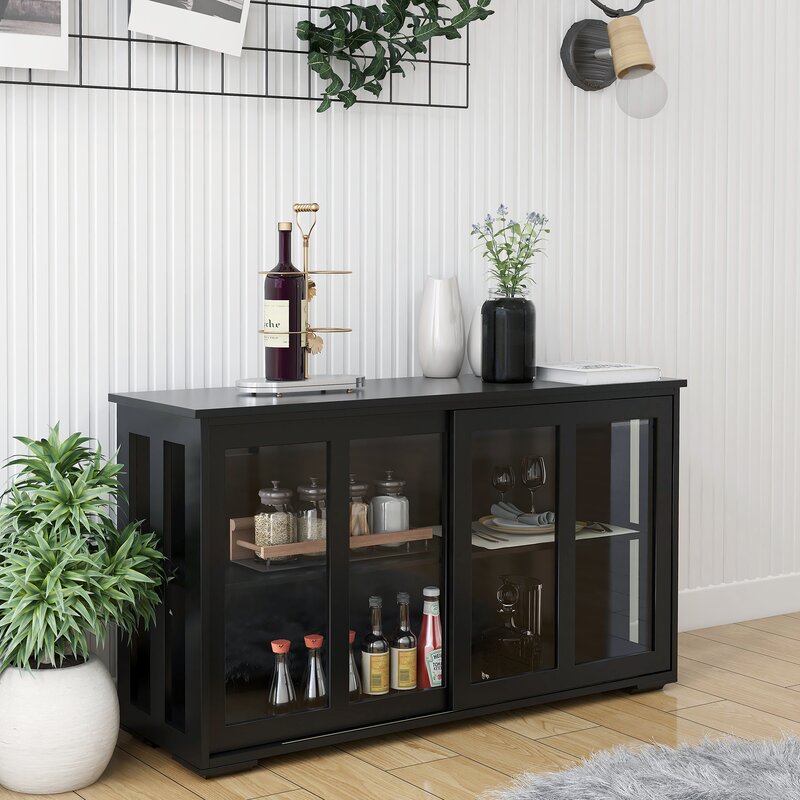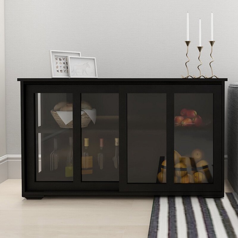 Nice sideboard table. Not as sturdy as I thought it would be but great addition to the house. Took me about a half hour to assemble. Instructions were clear to read. The sides are open and the doors slide on different tracks.