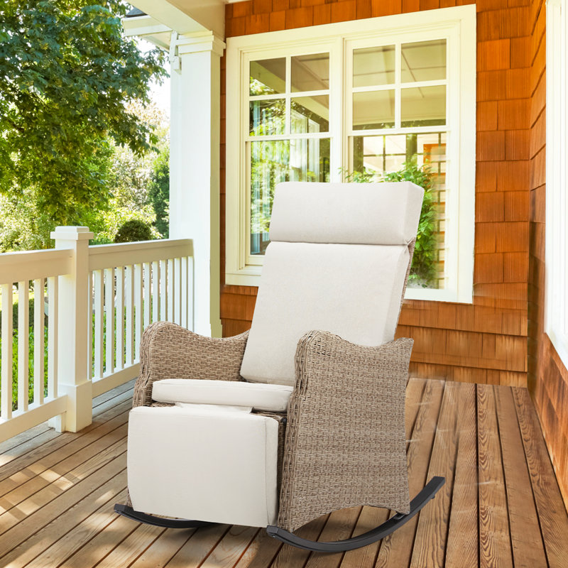 Rocking chair, patio reclining lounge chaise with soft removable cushion
