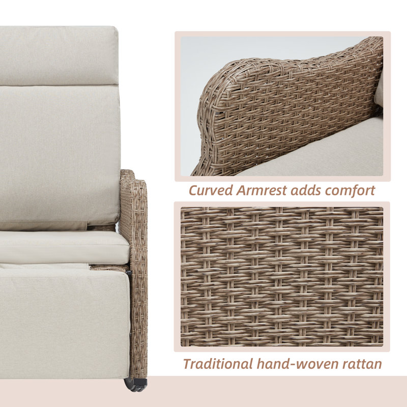 High quality material: Handmade wicker is weather-resistant, iron frame with strong load bearing; the cushion is splashproof, fade resistant and uv resistant