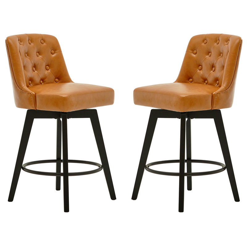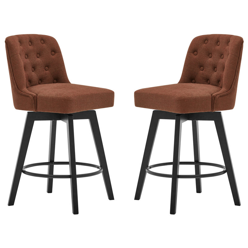 Designed with a deep button-tufted and barrel-curved back, this modern farmhouse bar stool offers exceptional comfort and style.