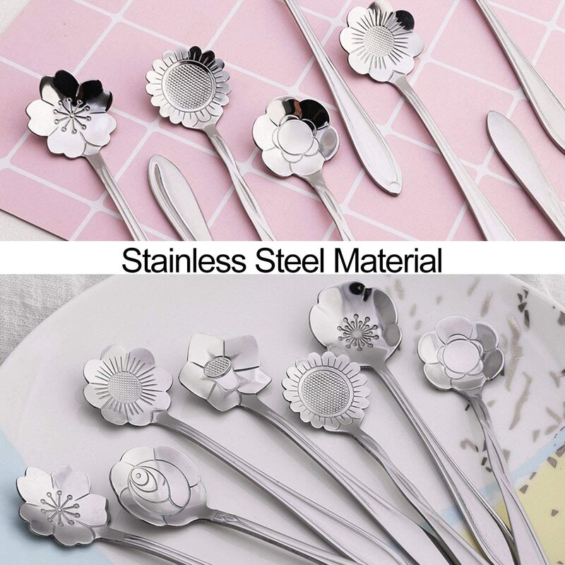 The flower spoons are crafted of high-quality stainless steel, durable and sturdy, don’t worry about rusting and tarnishing and can be used repetition with confidence, also very easy to wash, Dishwasher safe (no harsh detergents)