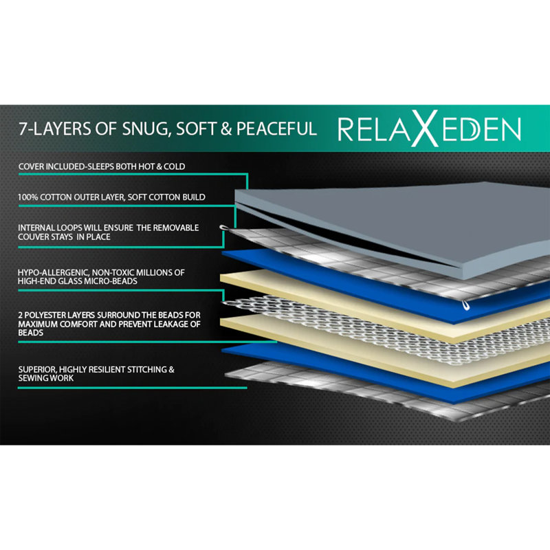 The 2 polyester layers that surround the high-end glass micro-beads ensure comfort and prevent leakage of beads