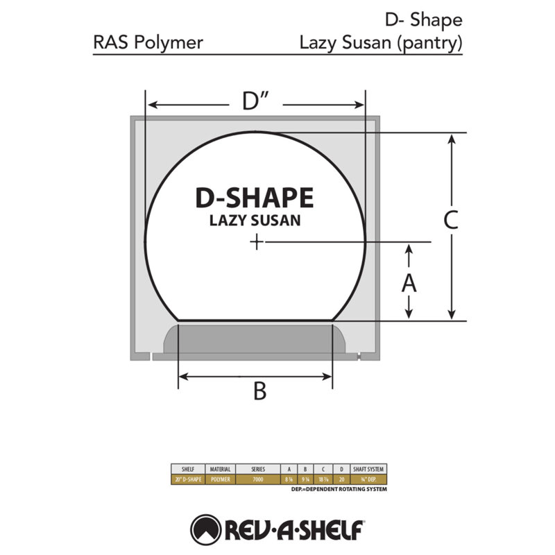 Maximize the space in your kitchen by adding the rev-a-shelf 20-inch D-shaped lazy susan organizer designed to fit inside a corner-based wall cabinet. This 2-shelf system is made of injection-molded polymer and sturdy rib construction for unmatched strength and durability. Each adjustable shelf holds up to 20 pounds per square foot of kitchen supplies, cleaning tools, dry goods, bakeware, and more. The telescoping shaft adjusts from 26 inches to 31 inches in height to fit your cabinet. Installation is made easy with the included high-quality, durable mounting hardware. Double-check your cabinet’s opening to allow the best fit. Measure side to side, front to back, and top to bottom. Don’t forget to take into account any obstructions and make sure your product is within measurements. Kitchen space is valuable in any home. Make the best of the extra space you’ll have in your own cabinets by adding this 20-inch lazy susan with 2 durable, rotating shelves.