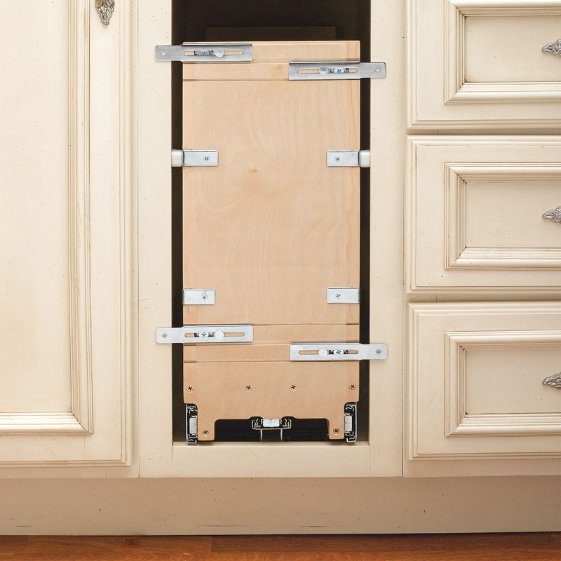 Rev-A-Shelf’s baking storage has never been more versatile than with the pullout organizer. Designed for base cabinets, these organizers feature two compartments for storing baking sheets and platters and the removable center racks allow you the ability to store larger platters and bakeware if desired. The unit is made from maple and glides on patented “tri-slides†for stability. Door mounting is a breeze with patented door mount brackets that provide flexibility for trouble-free installation on any door style.