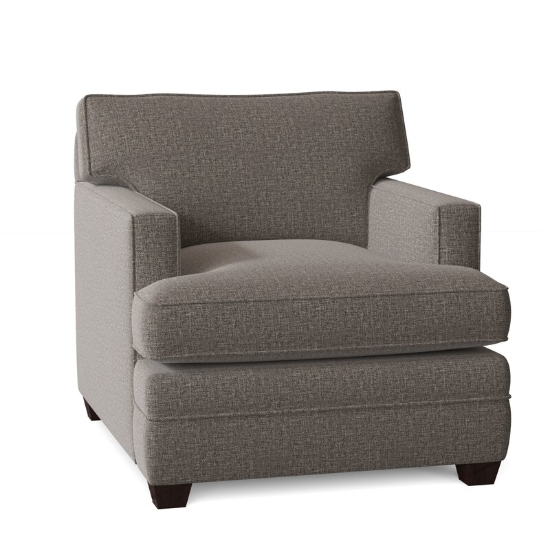 With its clean lines and low-profile design, this armchair has a sleek silhouette that blends with almost any space. This upholstered armchair is made in the USA with a solid and engineered wood frame. It features square recessed arms that are great for balancing snacks and electronics while curling up with a good book or watching movies. We love that the foam-filled seat and back cushions are reversible and have removable covers for easy cleaning. Plus, this chair is available in a wide range of upholstery hues, patterns, and fabric options to suit your style.