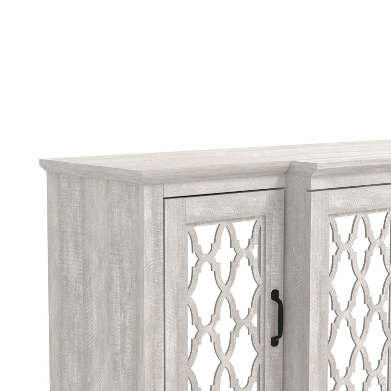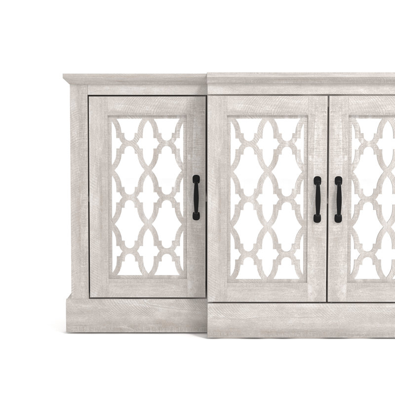 Keep all your stuff in this wide accent sideboard and make your space tidy and clean. Two side cabinets offer extra storage space, and its wide top surface is ideal for frame photos or blooming faux floral bouquets for a lovely and home-spun look.