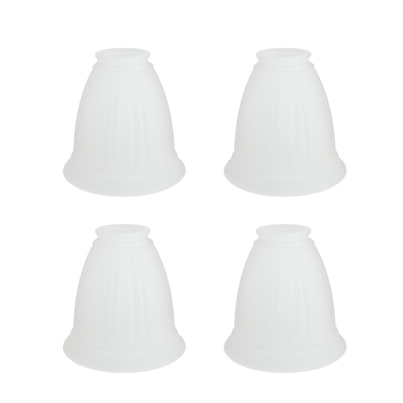 This product offers a 4 pack of frosted transitional style replacement glass shades. the replacement glass shades can be used on an assortment of ceiling fan light kit products that use a 2-1/8 inch fitter. Upgrade and/or change the look for your fixtures with an easy to glass change. Ships in a 4 pack.