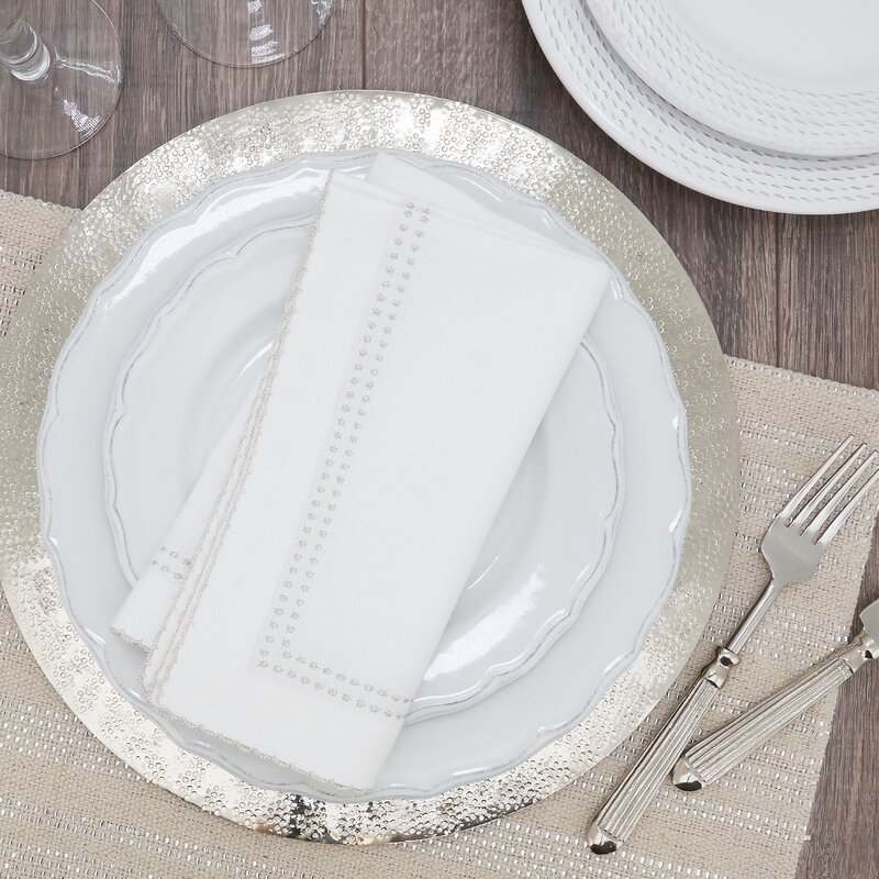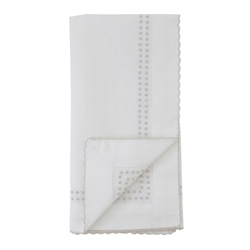 Perfect for everyday use, as well as special occasions, this beautiful set of Embroidered Border Table Napkins is highly versatile. It features a clean design in light, neutral colors that easily coordinate with any decor. Complete your table foundation and pair with a coordinating cotton runner.