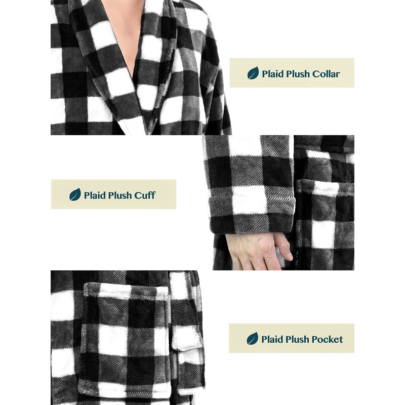 Their premium plush men’s fleece bathrobe is soft on your skin, lightweight, and keeps you warm. The accent the robe with plaid design to give it an extra comfortable feel!