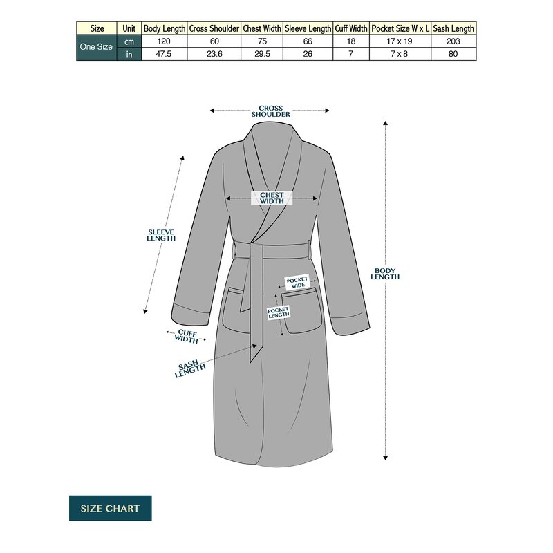 Comes with a waist strap so you can adjust for perfect fit and 2 side pockets to keep all your essentials! Equipped with a hood that will keep your head comfortable and warm. Long length robe with long sleeves for soft and snuggly warmth after spa, bath, or shower.