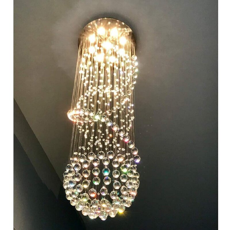 Not sure what kind of lights to buy? This crystal LED raindrop chandelier can be the best choice for you. Its unique raindrop shape and radiant crystal decoration add a sense of luxury to your home decoration. And a romantic atmosphere and a beautiful evening can be created by this gorgeous chandelier. Brightness can be adjusted with remote control. It is suitable for the living room, bedroom, restaurant, hotels, clubs, etc.