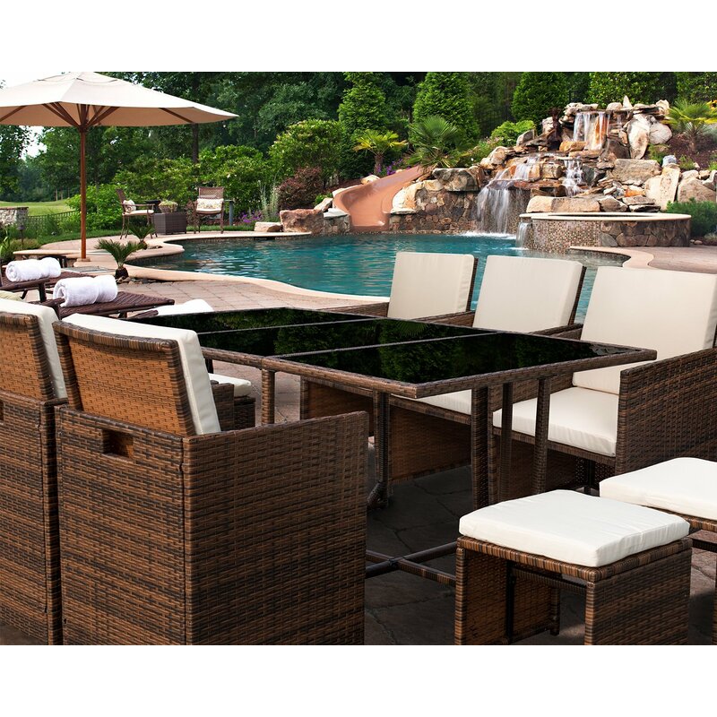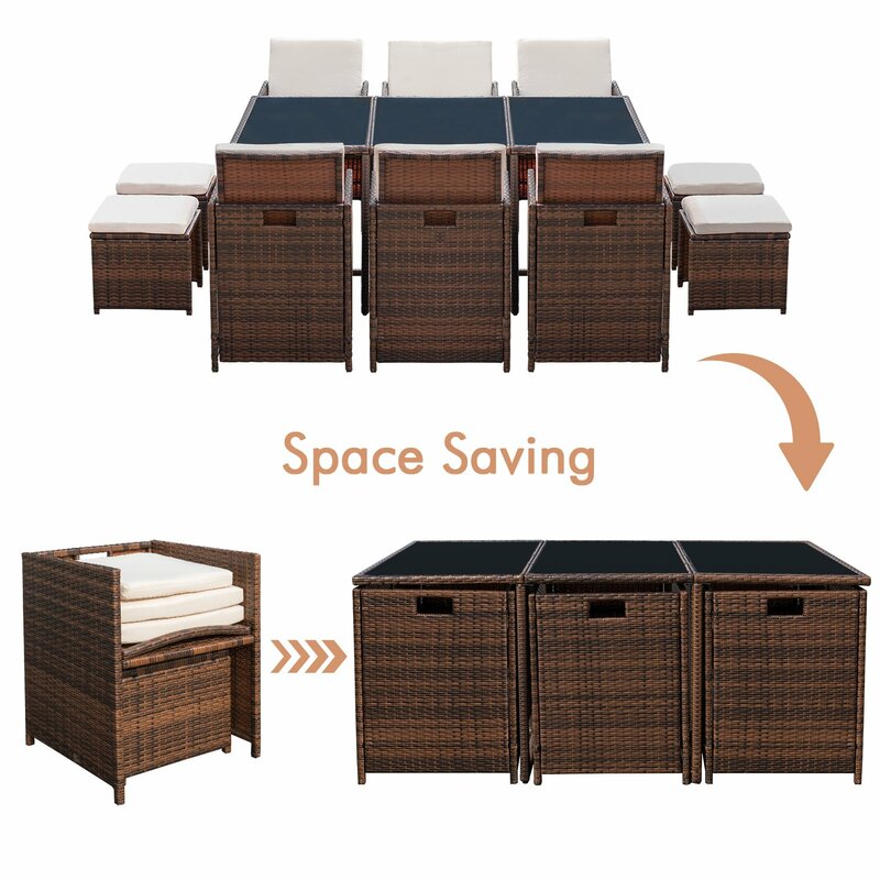 The design of 11 pieces of patio dining sets will go well with any garden or backyard arrangement and landscaping