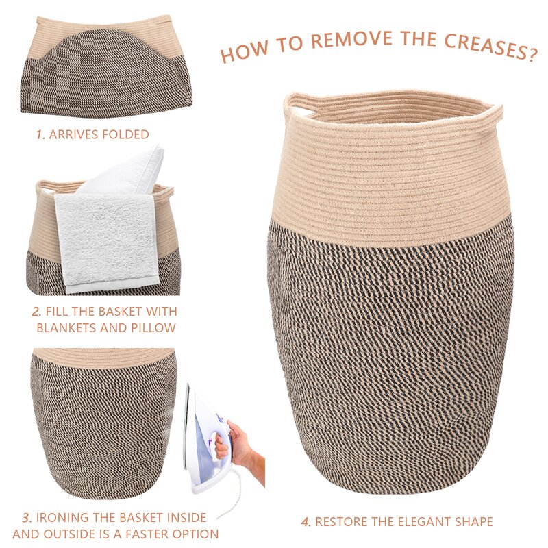 ã€How to Restore Shape】The laundry hamper comes folded. Simply fill it with clothes, pillows or blankets. Fast removing the creases by ironing it.