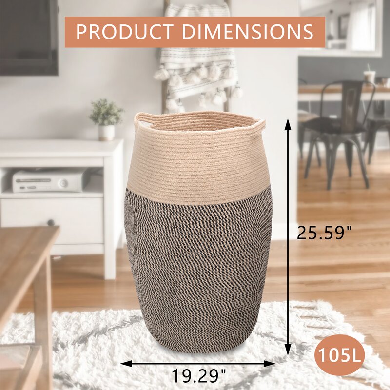 ã€Stylish and Easy to Carry】The laundry basket is tall and adequate storage is a guarantee. The maximum capacity of the dirty clothes hamper is 105L.The soft built-in sturdy handles is easy and comfortable to carry when loaded a week’s worth of laundry.