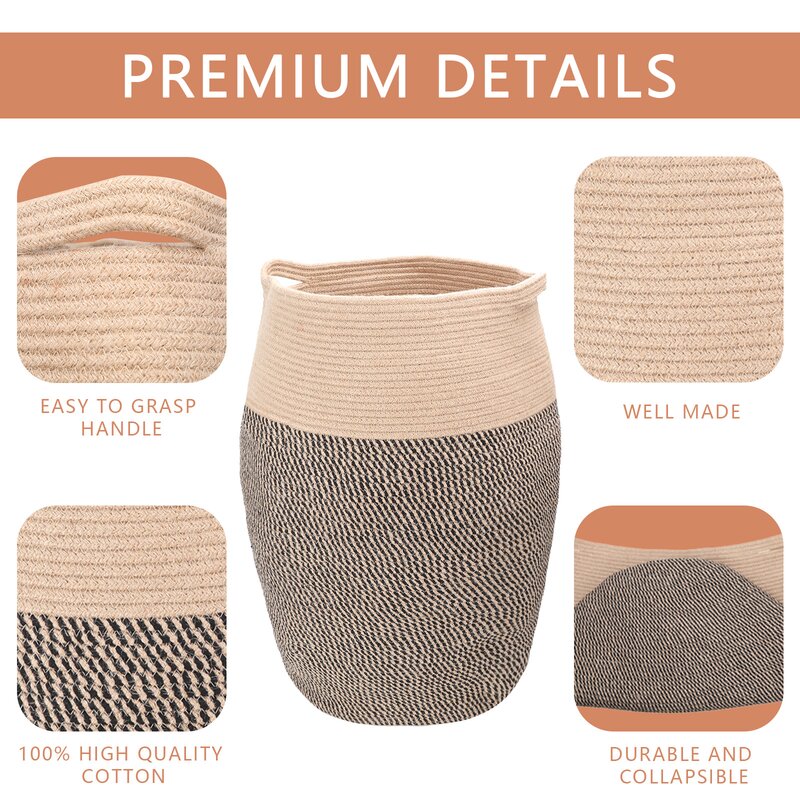 ã€Natural Material】The laundry basket made of natural cotton rope,the heavy duty structures and durability ensures that chikd will not be injured or damaged. Skin-friendly, Washable and easy to clean.