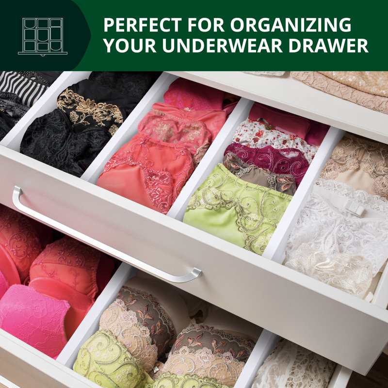 ✅ MULTIPURPOSE DRAWER DIVIDER INSERTS – Our stackable shirt organizer set is a perfect fit for 17â€-21.5†drawers. Known and loved for their versatile design, they serve great as drawer dividers for clothe and as dresser drawer dividers. Its adjustable design allows you to structure the layout of your drawer for even a custom lingerie organizer to hold all your delegates neatly