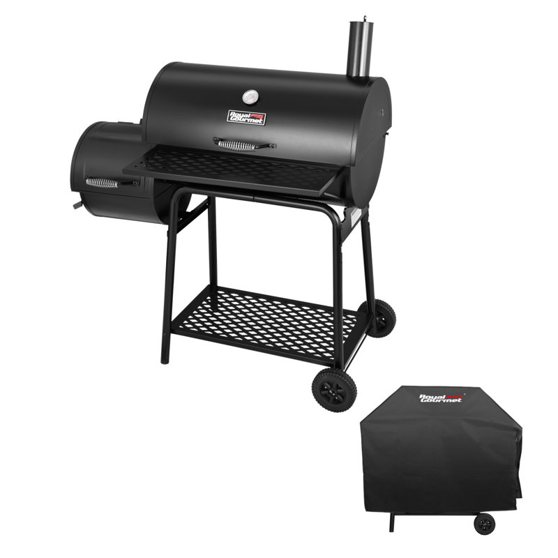 Royal Gourmet Charcoal Grill with Offset Smoker is perfect for family use and even when having a few friends over. It is also ideal when you just want a simple BBQ on the offset smoker. Featuring our new painting process, the grill is resistant to a scorching temperature and will not easily flake off. 437 sq. in. porcelain-enameled cooking grates are durable, and you can regulate your cooking temperature with our 2-level adjustable charcoal pan. The swing-away warming rack provides secondary space. With a seamless combination of offset smokers, great heat and smoke circulation are guaranteed. A side door allows you to add charcoal and clean ash easily. Open the air vent and stack on the chamber, you can stock fire and transfer smoke effectively. Check internal heat with a built-in thermometer on the lid. The spring handle protects the hand from hot temperatures. Sitting on two durable wheels, it is convenient to move from place to place.