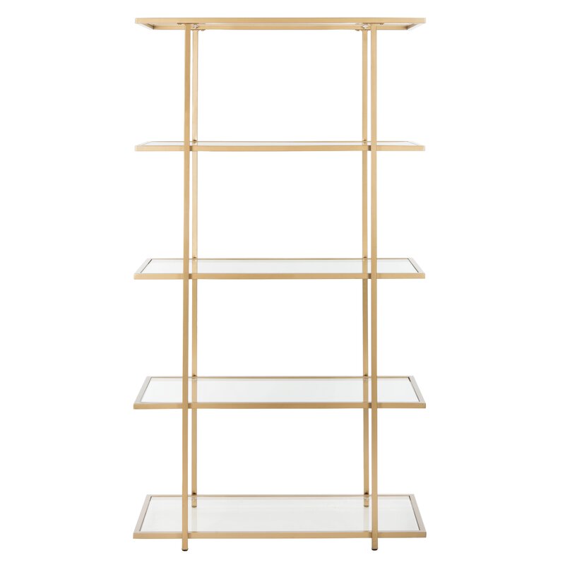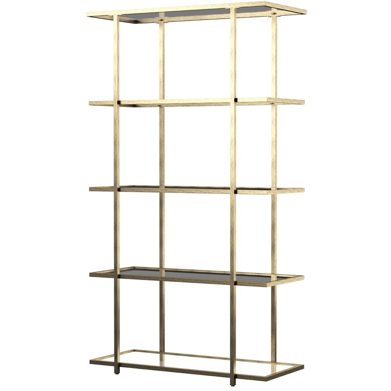 Streamlined design meets mid-century style in this modern etagere bookcase! Made from clean-lined tubular iron in a fashionable metallic finish, this bookcase features an airy, open frame. Crafted of clear, tempered glass, five clean-lined rectangular shelves provide perfect platforms for everything from rows of your favorite reads to collected curios.