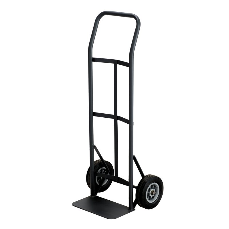 No job is too Tuff! This hand truck has a heavy gauge tubular steel frame with welded joints for extra strength. The Tuff Truck features a toe plate and solid rubber wheels with ball bearings. Black powder coat finish. 8” Hard Rubber – with Ball Bearing Frame: Steel Recycled: No Recycled Content: 0% Post-consumer-waste%: No Color: Black Maximum Load Capacity: 400 lb Brand Name: Safco