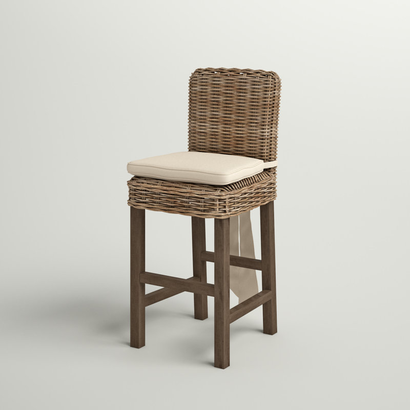 This stool brings a classic outdoor look inside for a charming, country companion for your kitchen island. It’s crafted with a rattan frame with a straight-legged base. The seat is covered in a traditional woven wicker rattan in brown with natural color variation. We love that it also features a full back, detachable cushion, and a built-in footrest – all for supporting you when you’re relaxing and enjoying a beverage at your counter or at-home minibar.