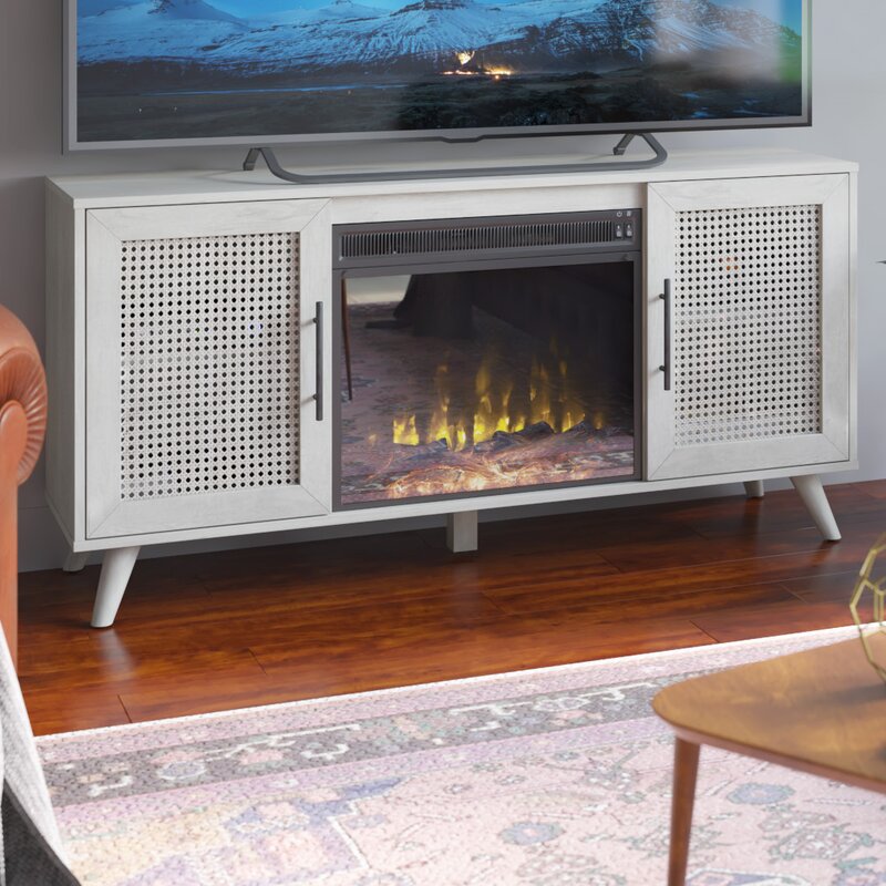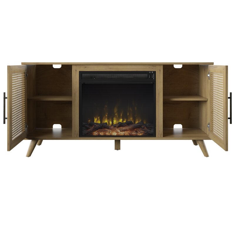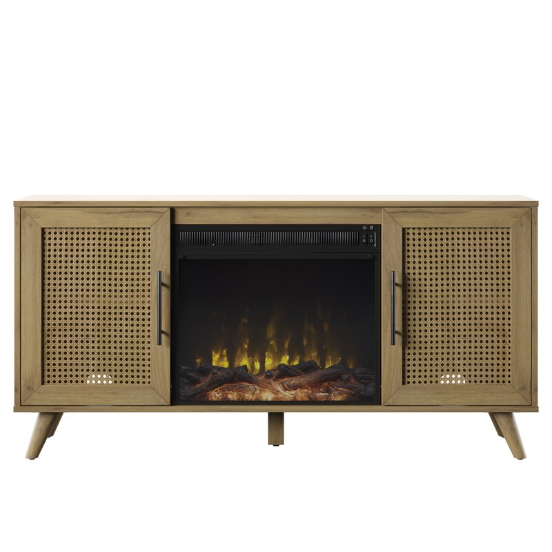 This TV stand adds ample storage and a cozy environment with an electric fireplace insert. Enjoy movie night by the electric fireplace insert with a realistic flickering flame effect. The frame fits TVs up to 60” and is made from engineered wood and features a vintage-inspired, distressed look. The two cabinets are great for organizing your entertainment essentials and keeping cords and clutter out of sight. A wall anchor is included for extra safety and stability.