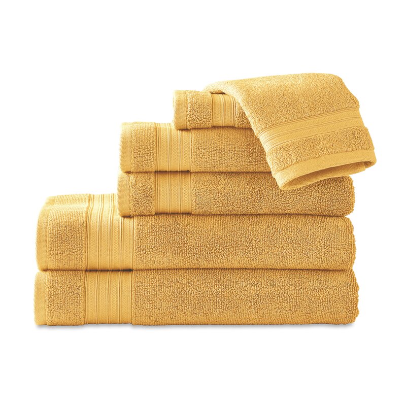 This 6 piece cotton blend towel set is a really nice purchase. It was so soft to the touch when I first opened the package, and then after I washed the set it felt even more luxurious. The set consists of two bath towels, hand towels and wash cloths. I chose the color ochre that looks like a cross between yellow and gold.