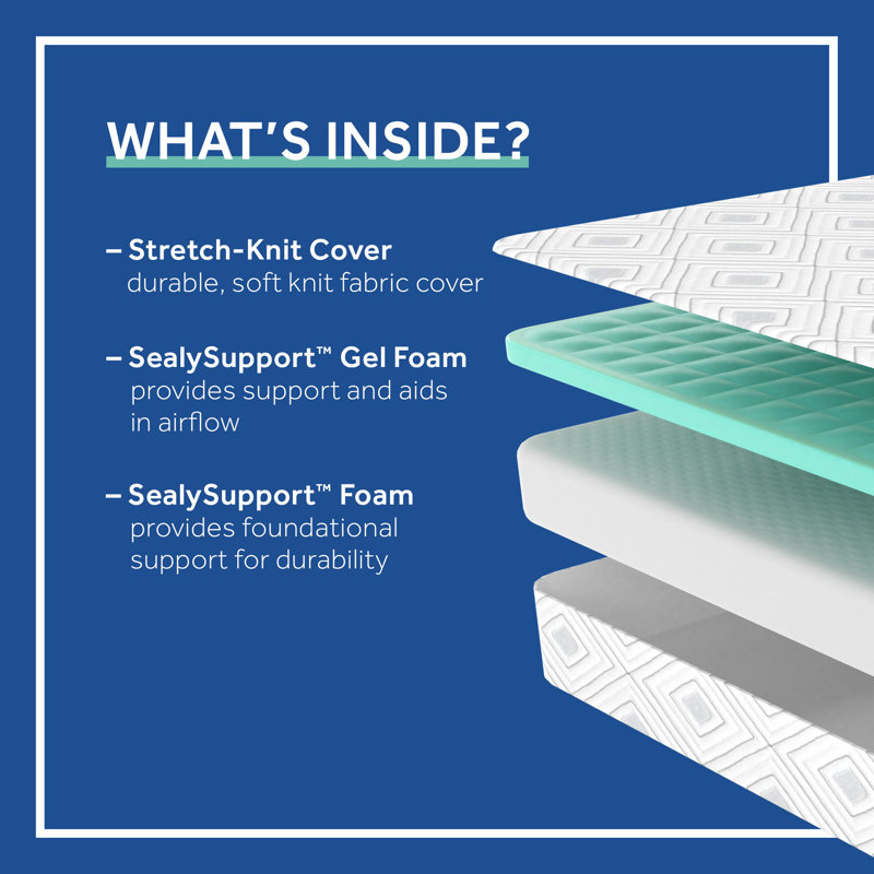 Sealy® foam mattresses use a combination of advanced foams to deliver custom body-hugging support for every part of your body. Our carefully layered foams conform to your shape, distributing your weight evenly to relieve pressure points so you wake up feeling refreshed. Our classic Sealy® Cool Collection is engineered for a great night’s sleep, delivering trusted Sealy® quality at an affordable price. Your mattress comes compressed in a box, combining Sealy® quality with the convenience of easy transportation.