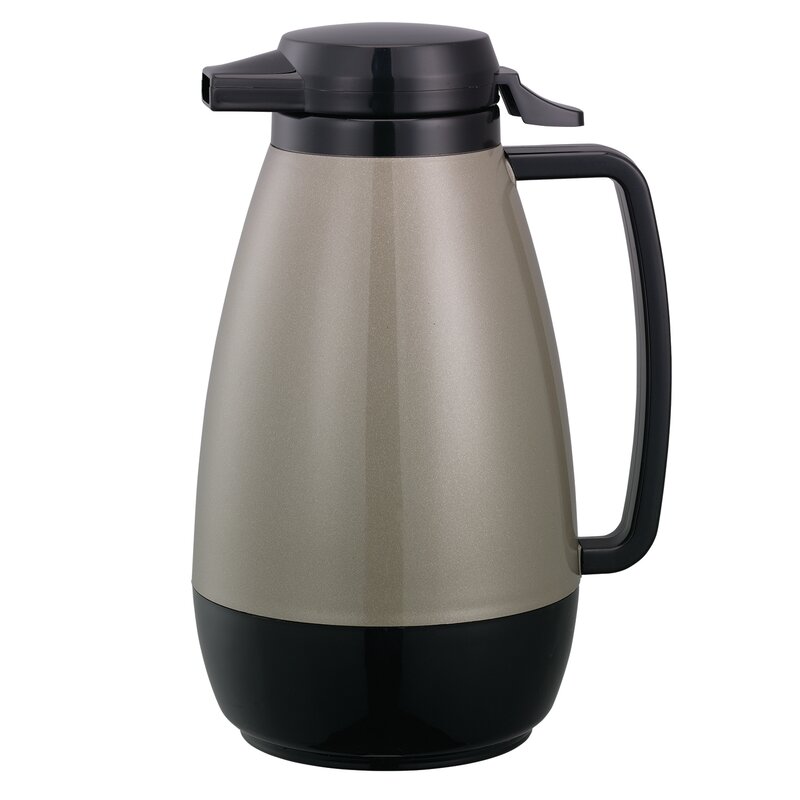 The thermo-serv push-button server is a classically designed carafe that features a durable ABS plastic shell with double-wall foam insulation and a safety push-button lid, ideal for serving hot coffee and water at the perfect temperature for 2-3 hours. Sonically welded seams create an ultra-smooth body and metallic flakes give the black finish a touch of sparkle. You will appreciate the quick quarter-turn installation and removal of the lid.