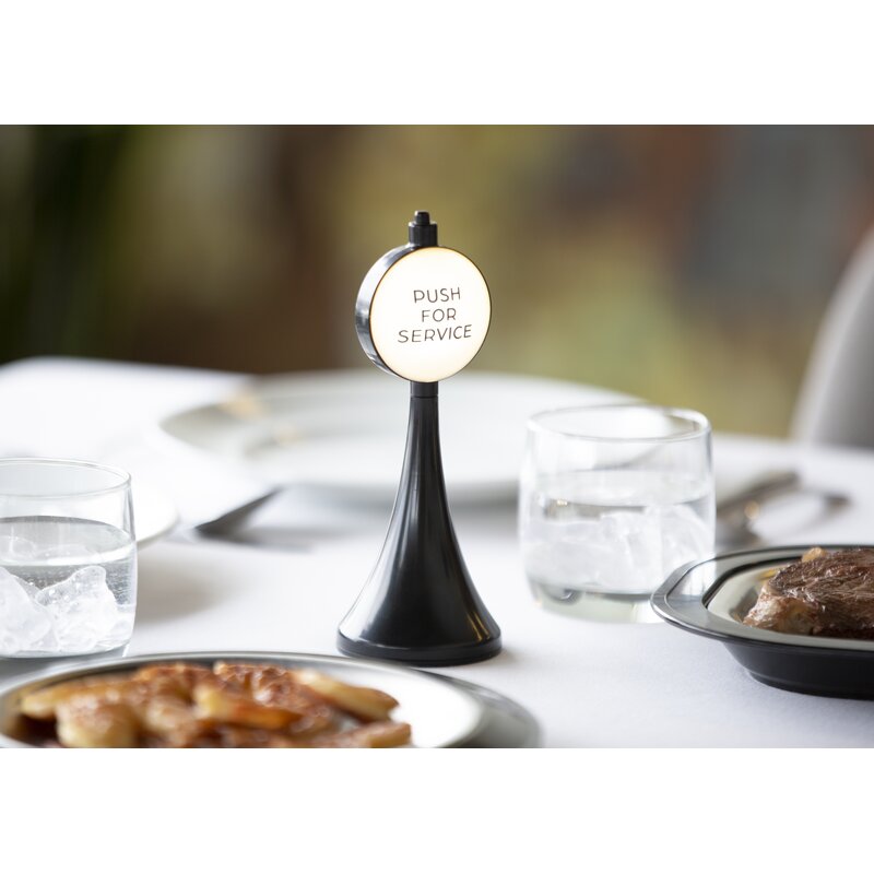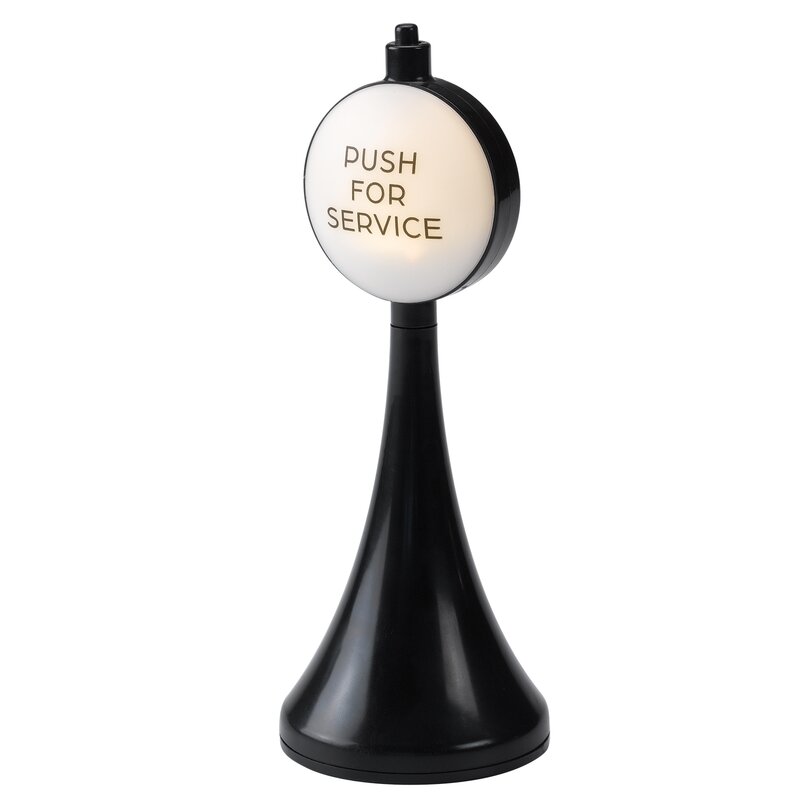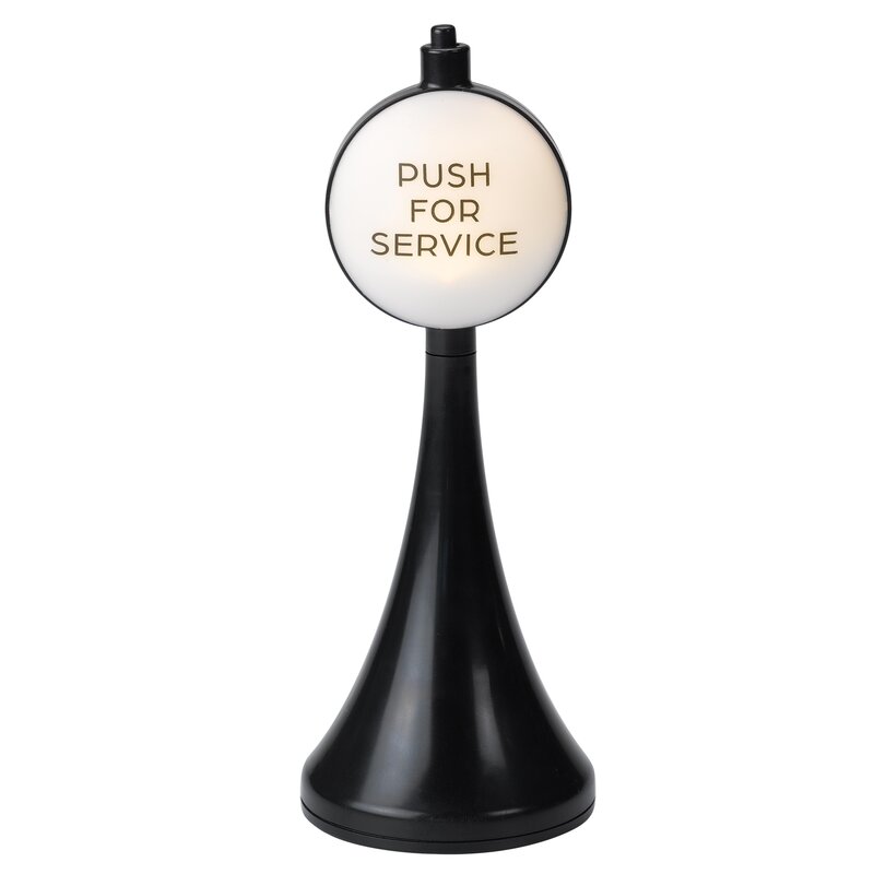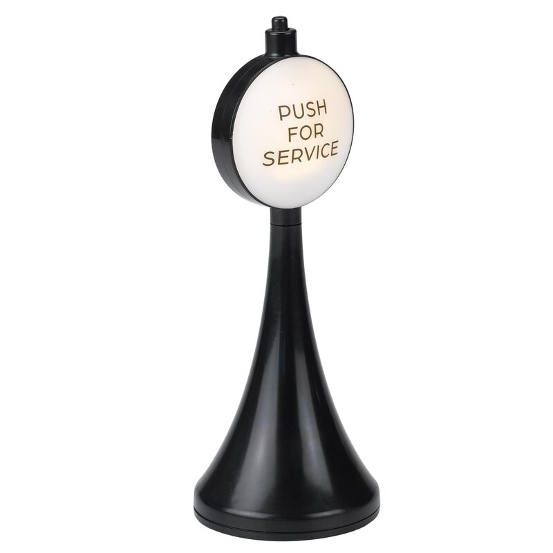 Impress your guests with the perfect balance of attentive but not overwhelming service with the Service Ideas Push-for-Service Light. Inspired by the original Push-for-Service Light invented by Art Murray in 1945, with a new slim design and weighted base, but with the same charming and retro-inspired light at the top. The perfect addition for restaurants, coffee shops, and other service-oriented hospitality businesses. Simply set the light on tables to create an easy way for guest to signal service is needed—no more shouting and waving to get the attention they deserve. With just a simple push of a button, your server will be visually alerted that attention is required. The Push-for-Service Light features an LED lightbulb activated by a button switch at the top and powered by two standard AAA lithium batteries (not included). Constructed of durable plastic with a weighted base to keep it from toppling over during service. Designed with a small footprint to easily fit among dinnerware and décor.