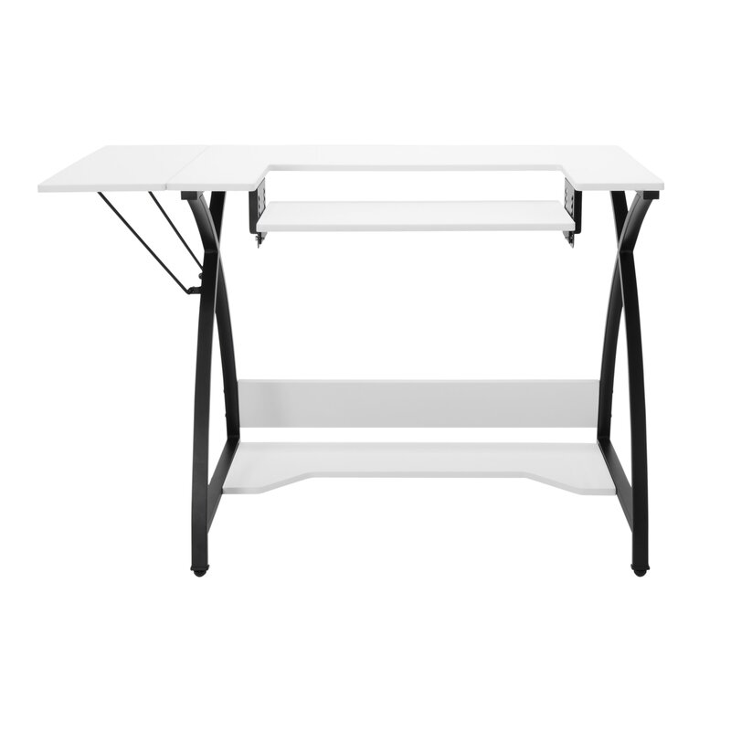Are you using a standard table with your sewing machine? The Comet sewing table by Sew Ready is an affordable and stylish upgrade for your sewing projects. The drop-down platform allows you to align your sewing machine base height to the tabletop height, allowing the fabric to glide smoothly across the top. The bottom shelf can hold bins and boxes of supplies. The drop leaf adds tabletop space for your fabric while sewing or it can be put away for added space in your hobby room. The stylish design and features also make it a great computer desk. The Comet sewing table is versatile enough to use in the craft room or home office.