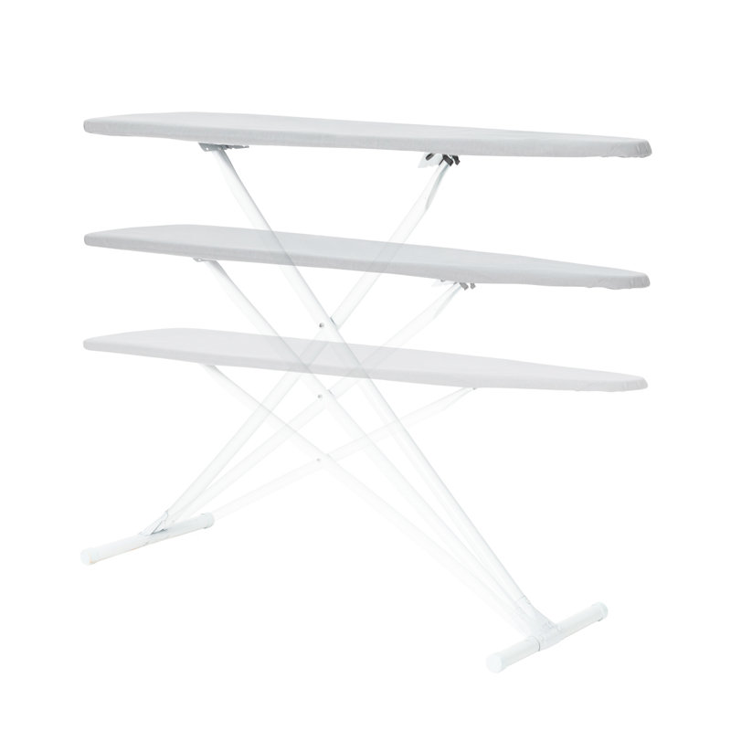 The T-leg ironing board from Seymour Home Products is the essential tool to make your laundry day a breeze by keeping all your garments freshly pressed and ironed. With a 53″ x 14″ perforated steel top, this ironing table provides a sturdy and ample ironing surface for clothing of all sizes. The smooth 100% cotton cover and foam pad provides a comfortable and convenient ironing surface to ensure all dress shirts, slacks, bed sheets, tablecloths, etc. are crisp and wrinkle-free. This foldable ironing board easily adjusts to any height, up to 35 tall, and can fold flat, saving you space in your apartment, dorm room, laundry room, living room, or even closet. A sturdy and durable metal T-leg provides stability and a patented leg lock design allows for efficient transport and storage. Proudly made in the USA, Seymour Home Products is the only U.S. manufacturer of ironing boards. For over 65 years, our facility in Seymour, IN has produced high-quality steel-top ironing boards built to last for all your garment care needs.